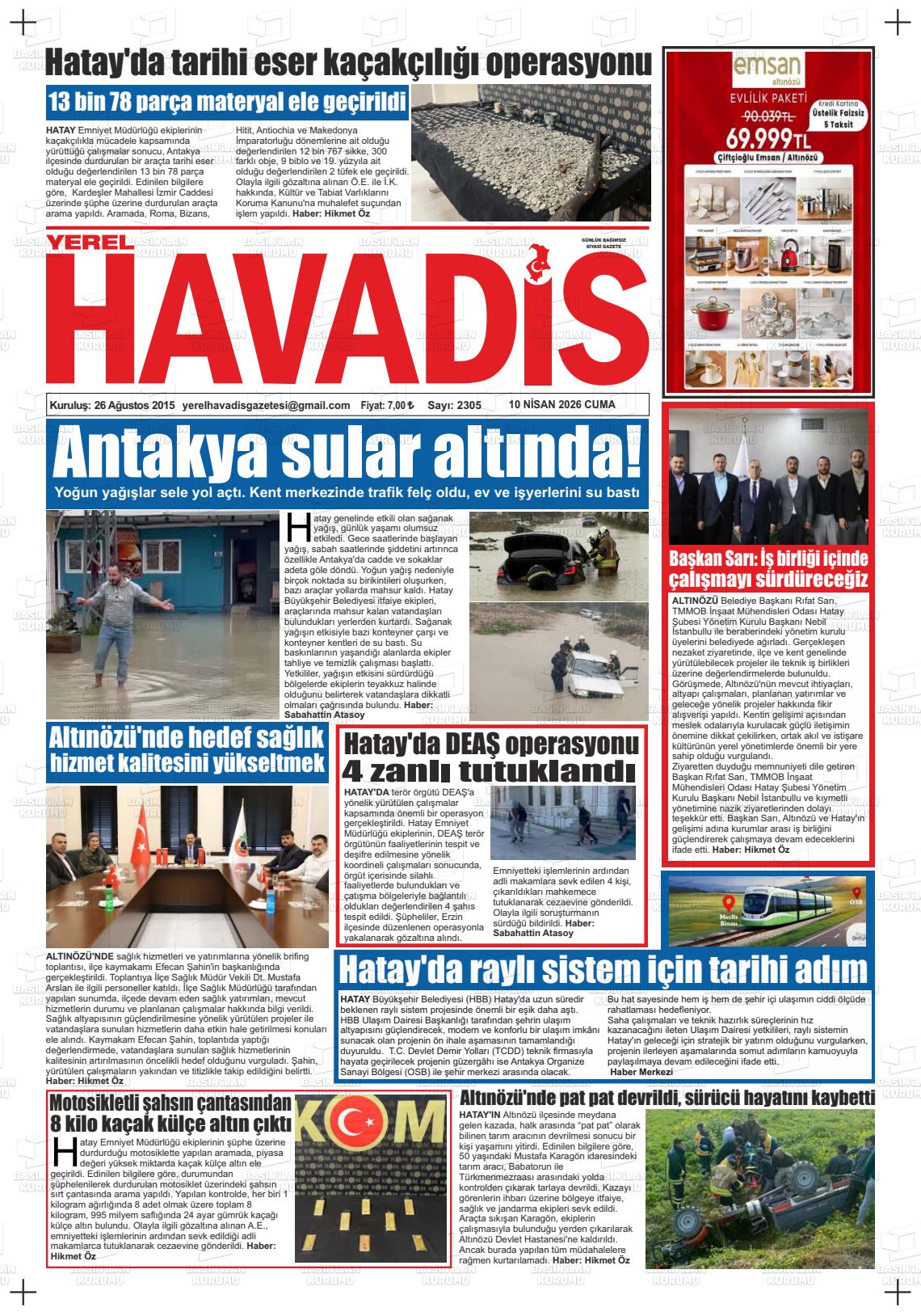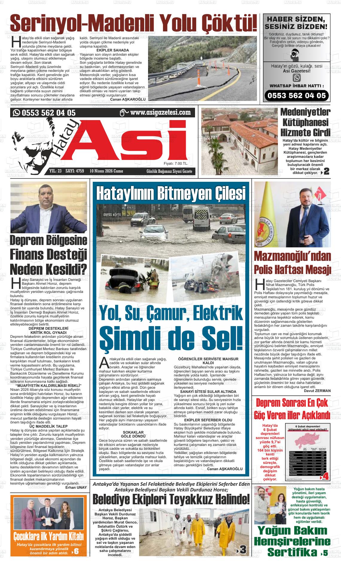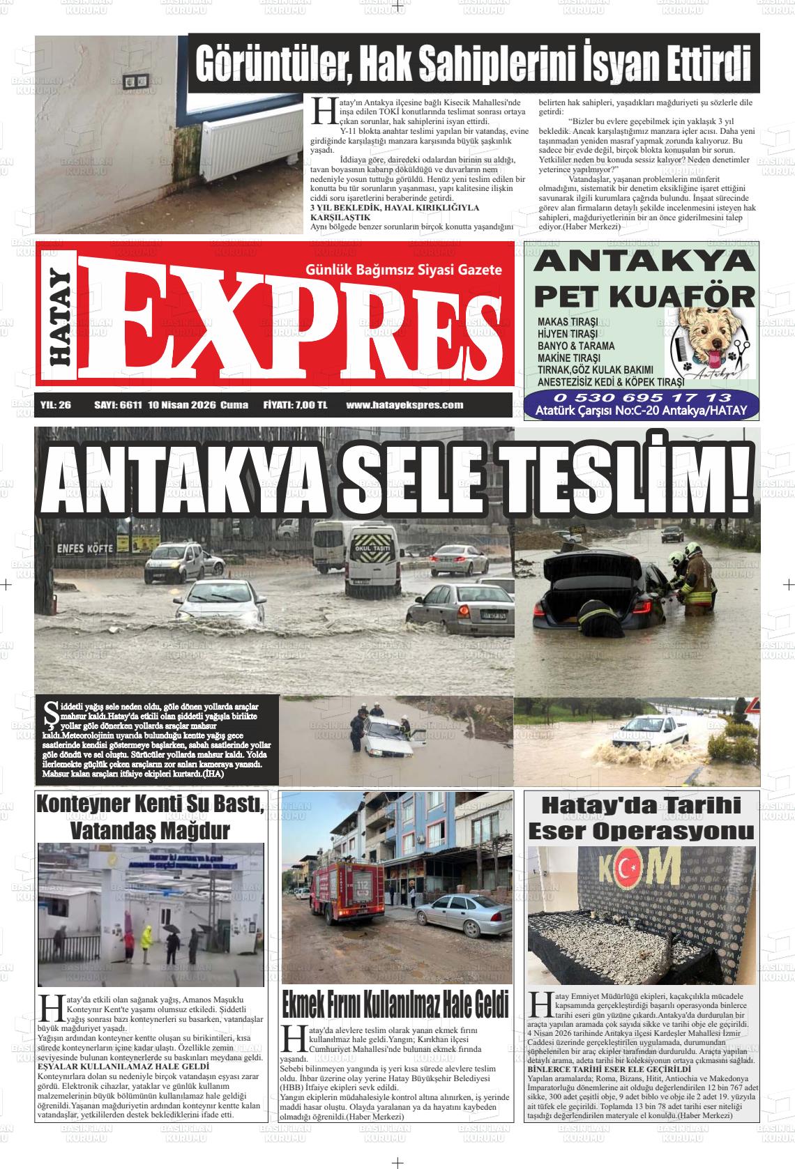 Hatay Yerel Gazeteleri 10 Nisan 2026, Cuma Günü Manşeti