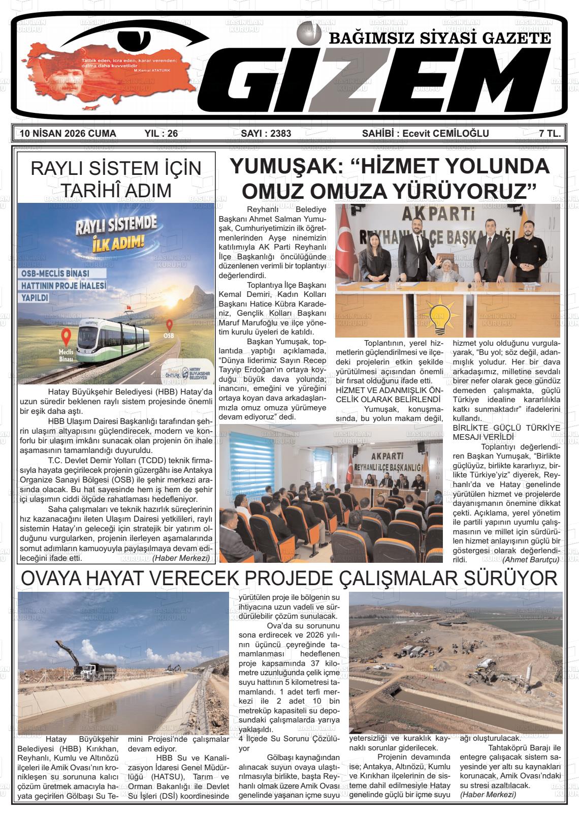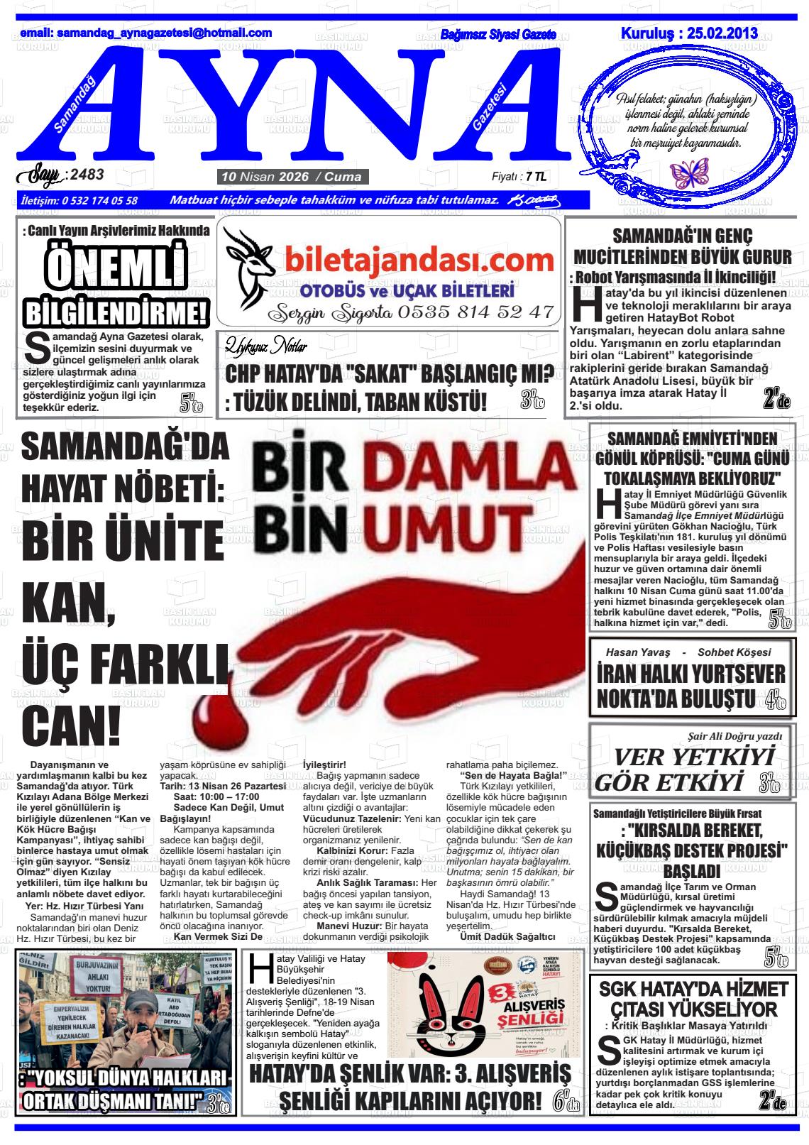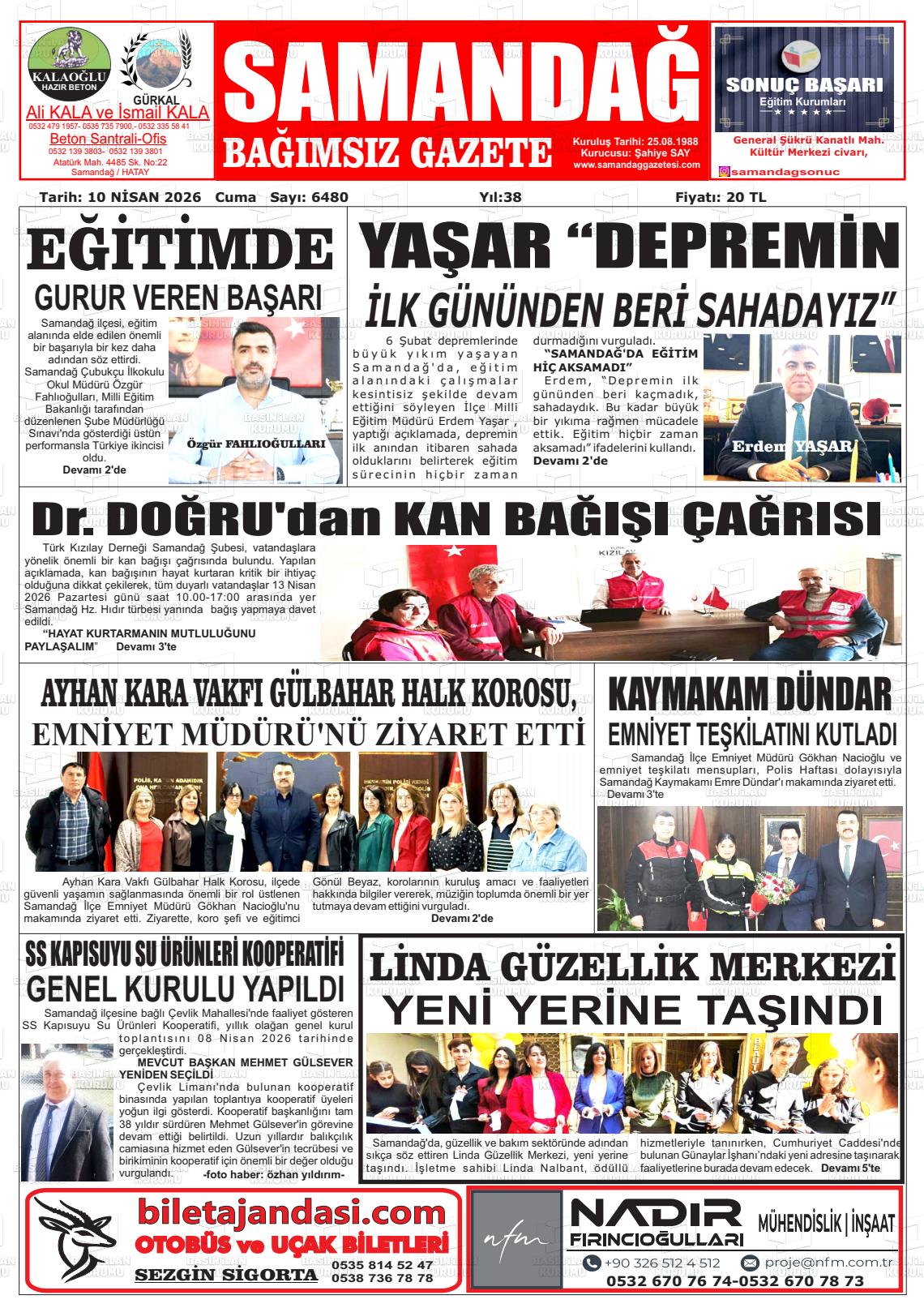 Hatay Yerel Gazeteleri 10 Nisan 2026, Cuma Günü Manşeti